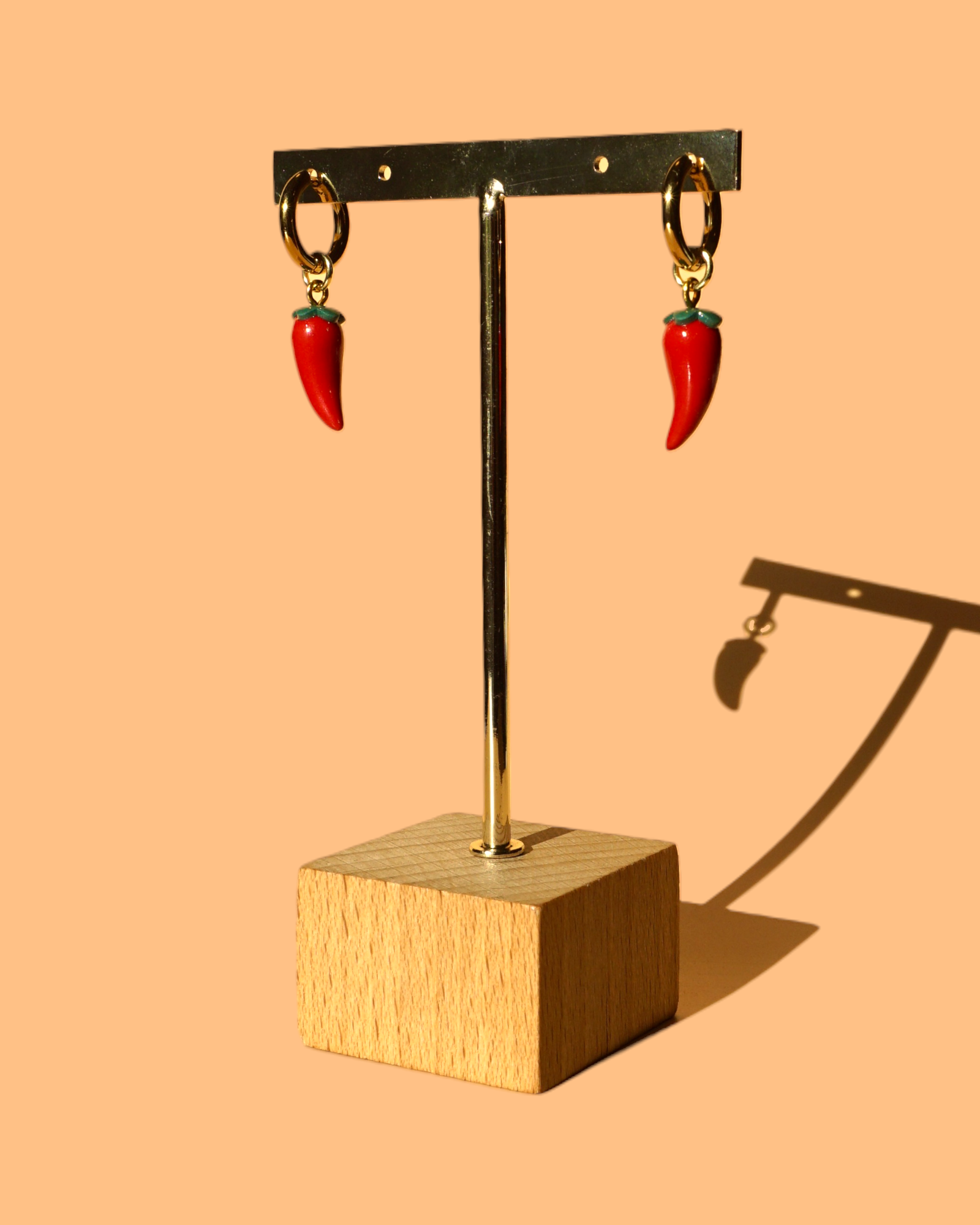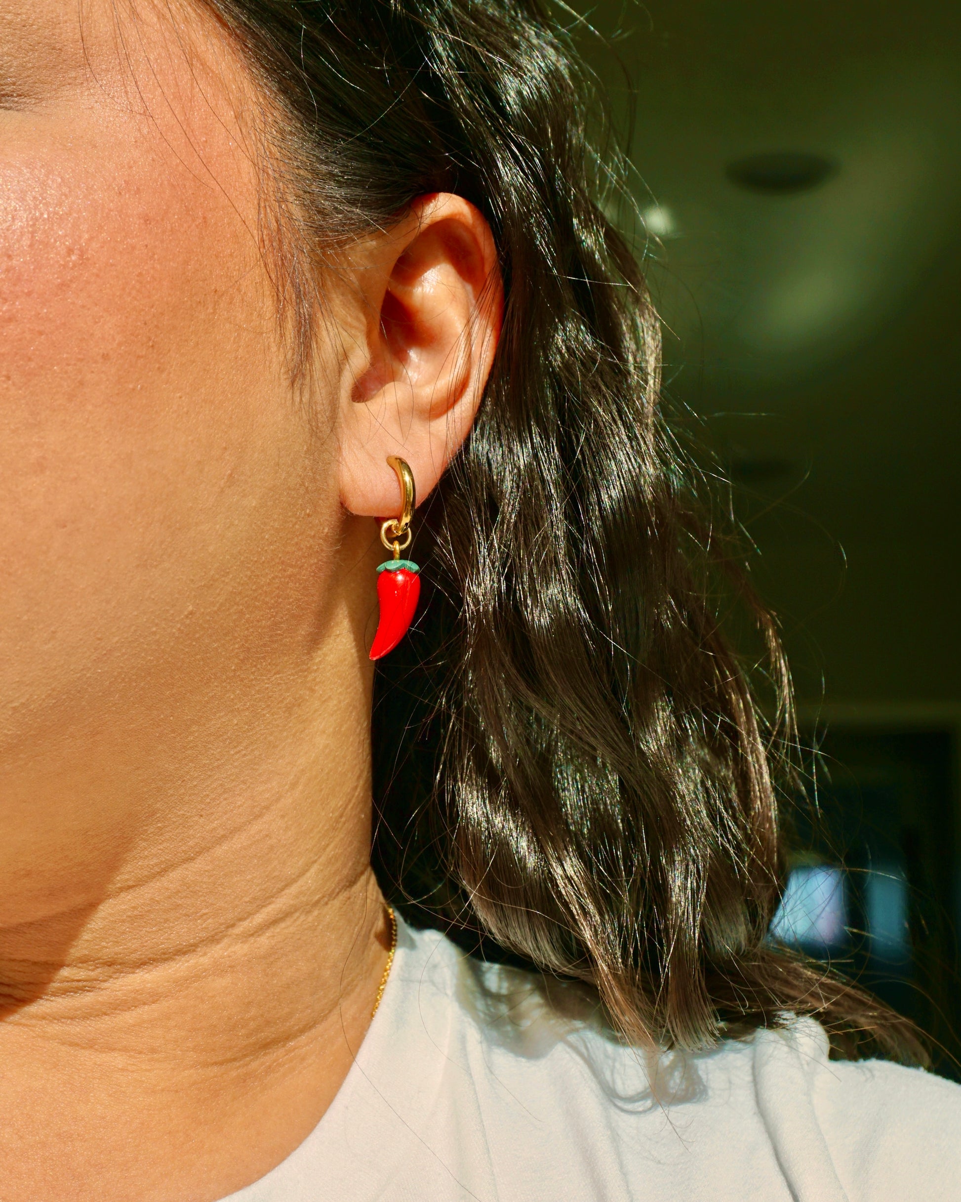 Our chili pepper charm earrings are handmade with polymer clay for a lightweight feel and assembled with 316L surgical steel hypoallergenic hardware. All of our polymer clay earrings and accessories are designed and handmade in Los Angeles, California by maker and founder, Kyrstin Constantino.