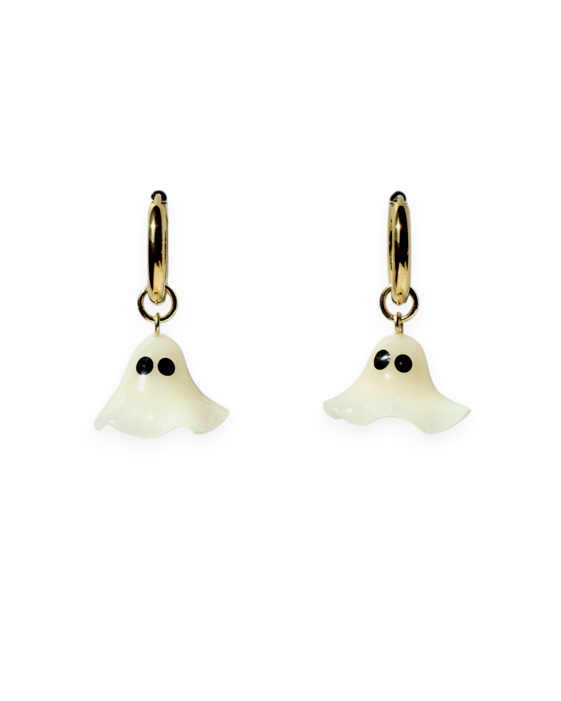 Our ghost charm earrings are sculpted with polymer clay for a lightweight feel and assembled with 316L surgical steel hypoallergenic hardware. All of our polymer clay earrings and accessories are designed and handmade in Los Angeles, California by maker and founder, Kyrstin Constantino.