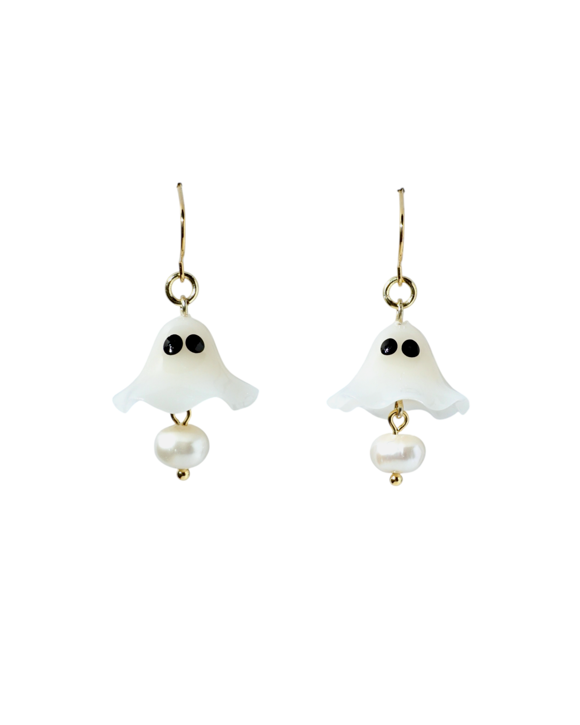 Our ghost dangle earrings are sculpted with polymer clay for a lightweight feel and assembled with 316L surgical steel hypoallergenic hardware. All of our polymer clay earrings and accessories are designed and handmade in Los Angeles, California by maker and founder, Kyrstin Constantino.