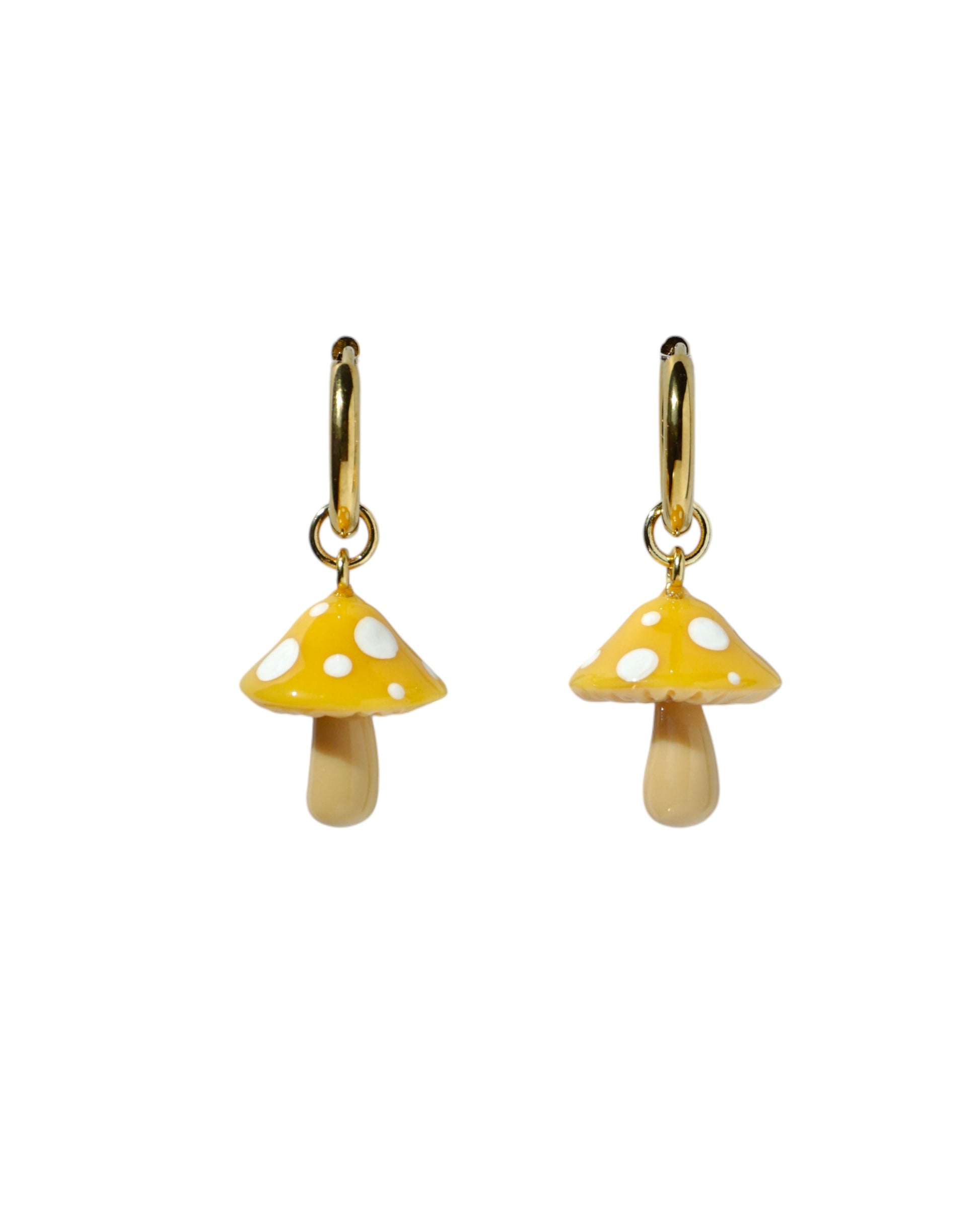 Our mushroom charm earrings are sculpted with polymer clay for a lightweight feel and assembled with 316L surgical steel hypoallergenic hardware. All of our polymer clay earrings and accessories are designed and handmade in Los Angeles, California by maker and founder, Kyrstin Constantino.