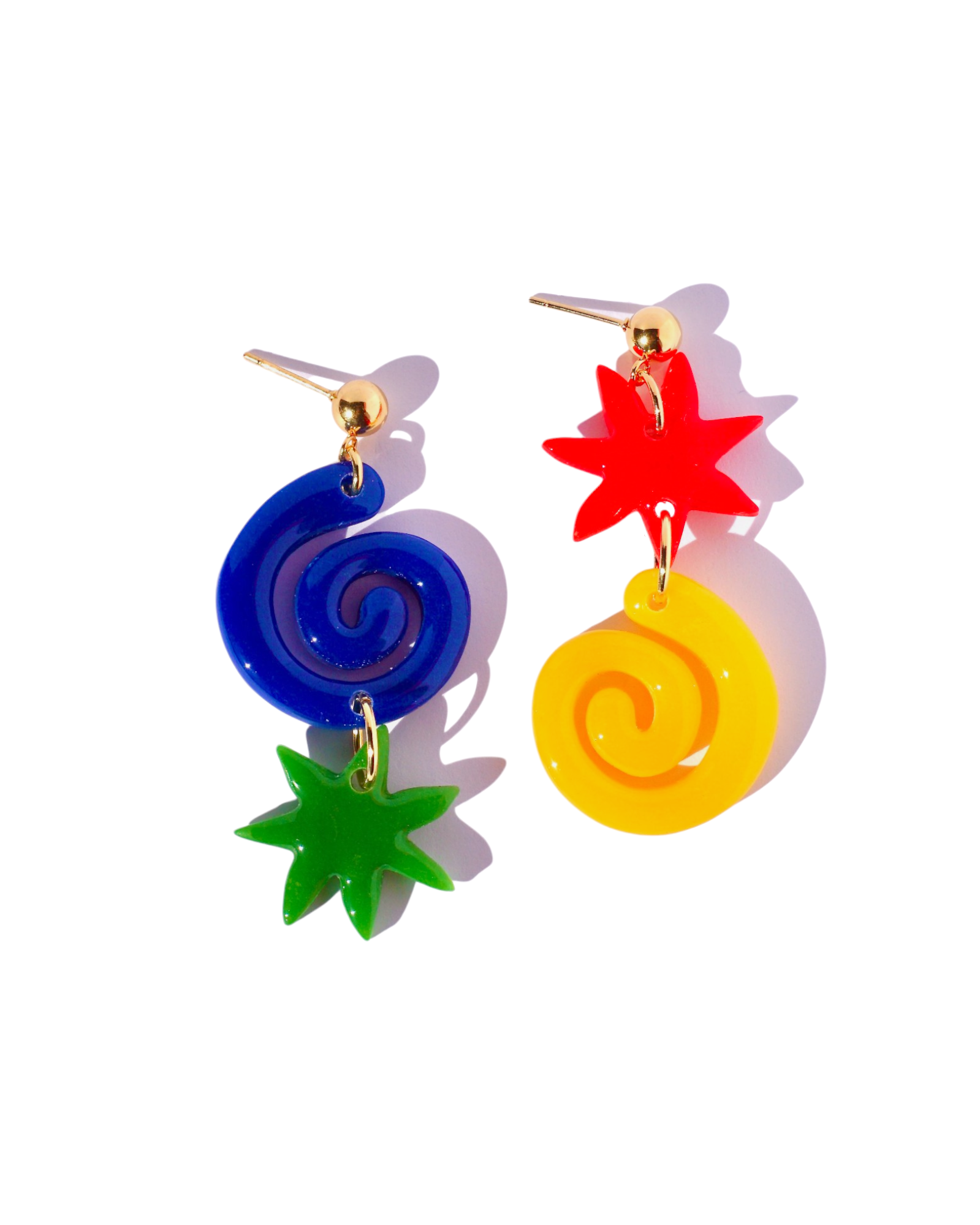 Our shapes no.1 earrings are handmade with polymer clay for a lightweight feel and assembled with 18k stainless steel gold plated hypoallergenic hardware. All of our polymer clay earrings and accessories are designed and handmade in Los Angeles, California by maker and founder, Kyrstin Constantino.